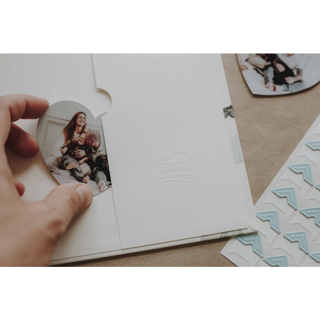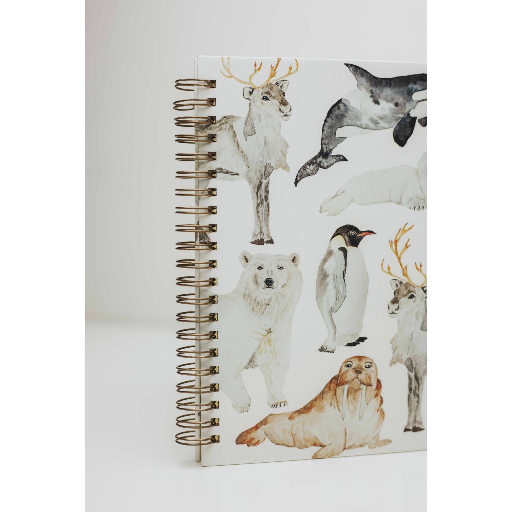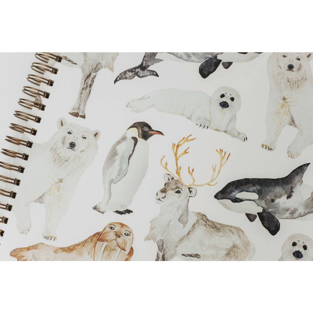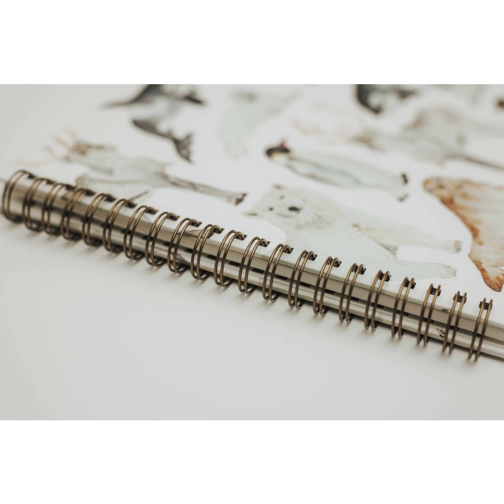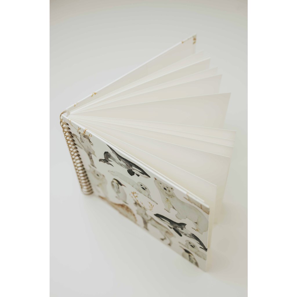 Obsahuje 15 listů jemně krémového ekologicky vyráběného papíru Munken Pure. Vazba z bronzové spirály zajistí, že album při prohlížení otevřete do úplné roviny. Uvnitř fotoalba je kapsa se slepotiskem loga, kam můžete zastrčit fotografie, které čekají na nalepení spolu s fotorůžky. Na deskách najdete akvarelové ilustrace tuleně, kosatky, ledního medvěda, tučňáka, soba a mrože. Přebal je opatřen matnou laminací, která chrání jeho povrch.